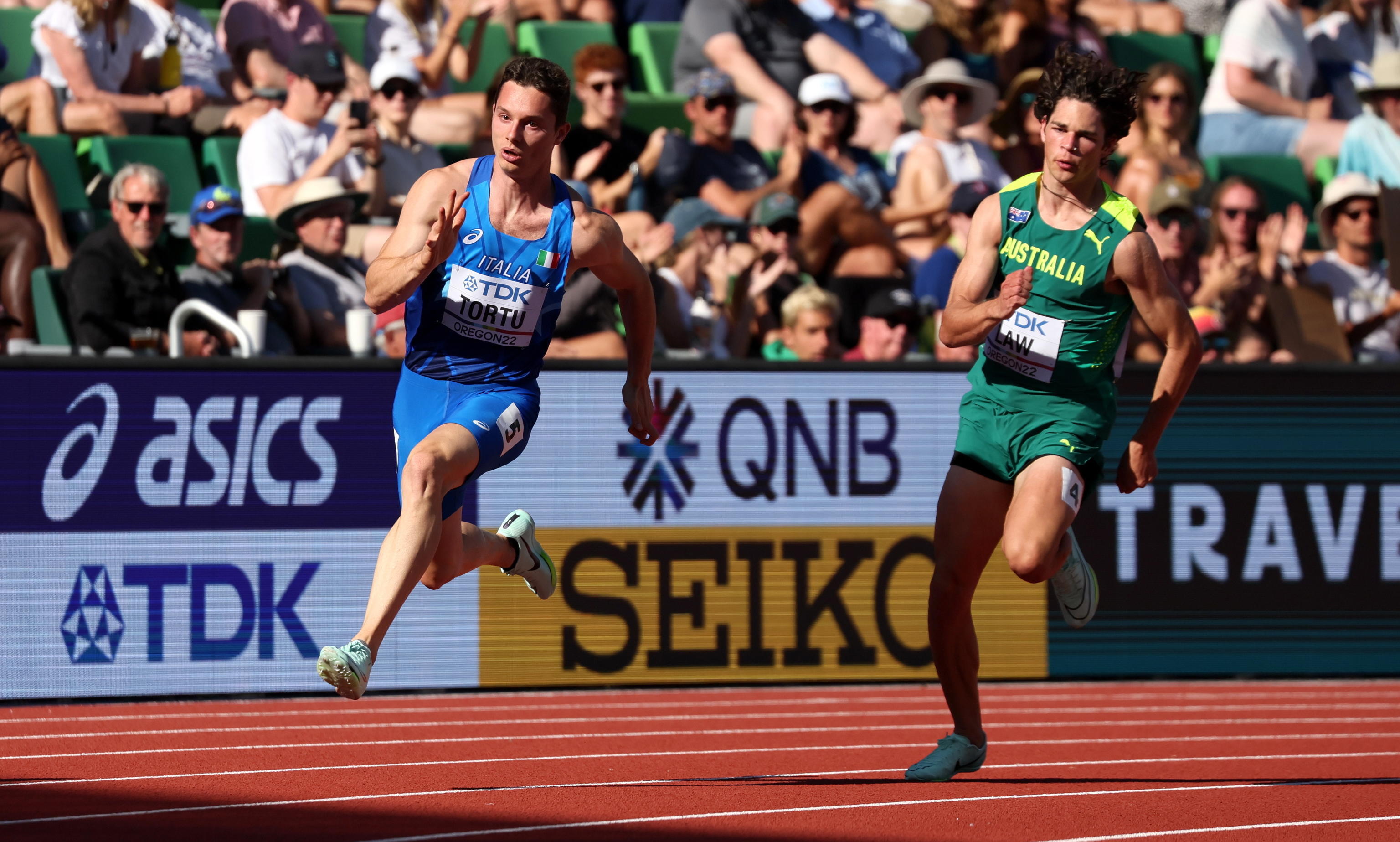 Come nelle attese, nei 200 metri si sono imposti gli americani. Nohah Lyles guida la fila dei qualificati alla semifinale con 19.98 (-0.3), seguito da Erryon Knighton (20.01). Fred Kerley, campione del mondo dei 100, segna un 20.17 conclusivo (+0.4). Tortu è appena dietro Kerley, al nono posto complessivo. Si torna in pista domani, ancora una volta nella notte italiana: le 3:50 del mattino.