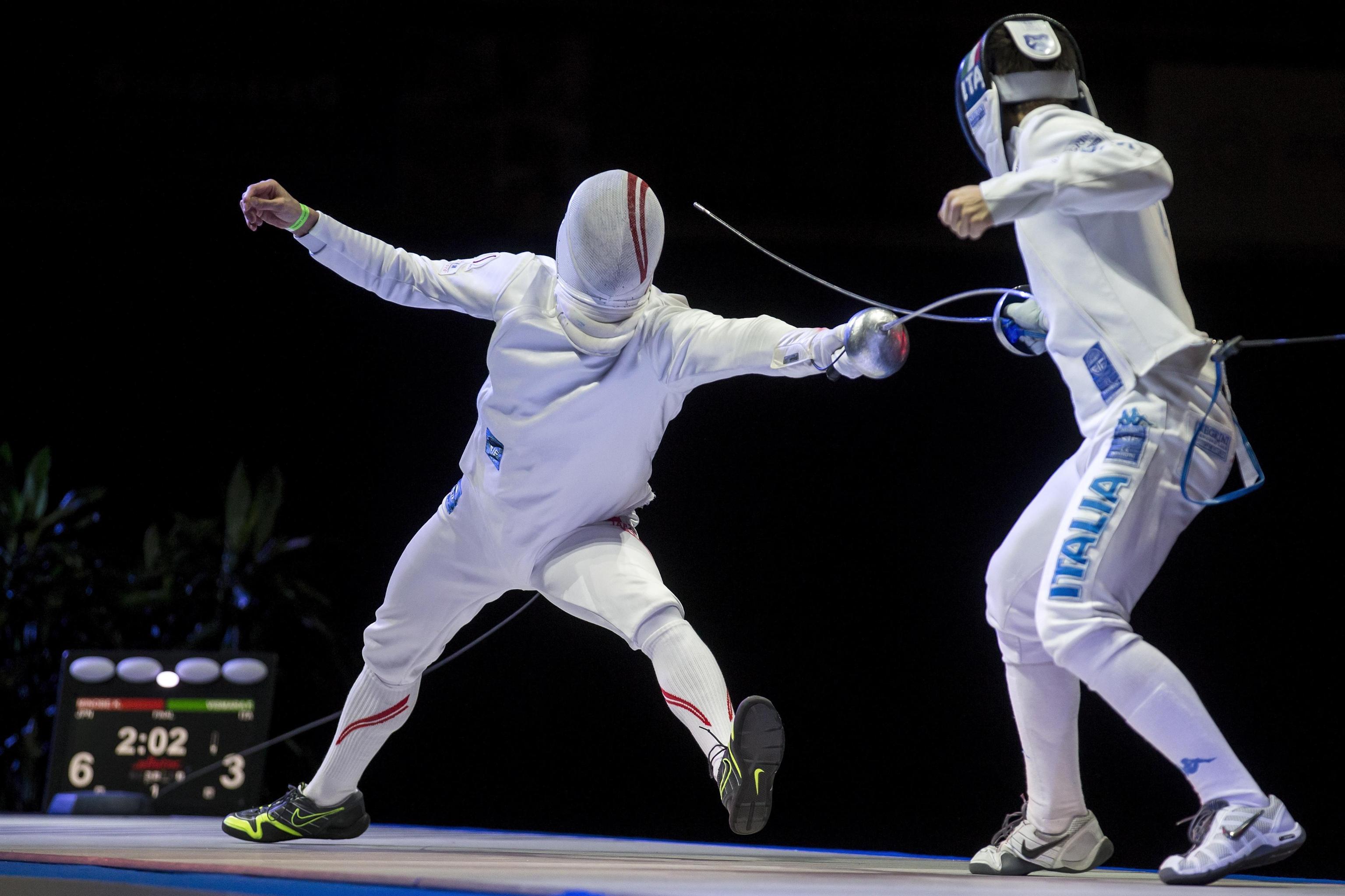Il romano delle Fiamme Oro aveva battuto 15-11 lo spagnolo Juan Pedro Romero e 15-9 il francese Nelson Lopez Pourtier, prima della sconfitta 15-11 contro l'atleta di Hong Kong Hoi Sun Fong. Il milanese delle Fiamme Azzurre ha fallito l'accesso agli otto dopo essere stato superato 15-12 dal campione olimpico francese Romain Cannone, mentre prima aveva ottenuto le vittorie 15-5 sull'iberico Manuel Bargues e 15-8 sull'estone Sten Priinits.