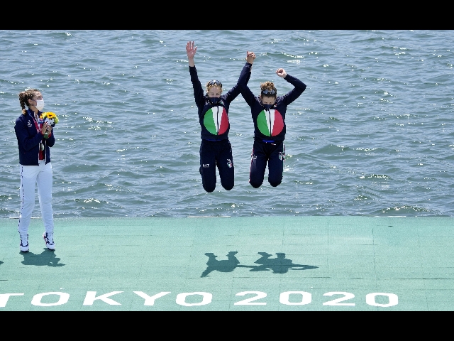 (ANSA) - ROMA, 30 LUG - Festeggiamenti calorosi questa sera all'aeroporto di Fiumicino, al rientro con il volo Alitalia da Tokyo, per le ragazze d'oro del doppio pesi leggeri femminile del canottaggio, Federica Cesarini (Fiamme Oro/Gavirate) che ha poi subito proseguito per Milano, e Valentina Rodini (Fiamme Gialle), prime donne nella storia remiera azzurra a salire sul podio a cinque cerchi.