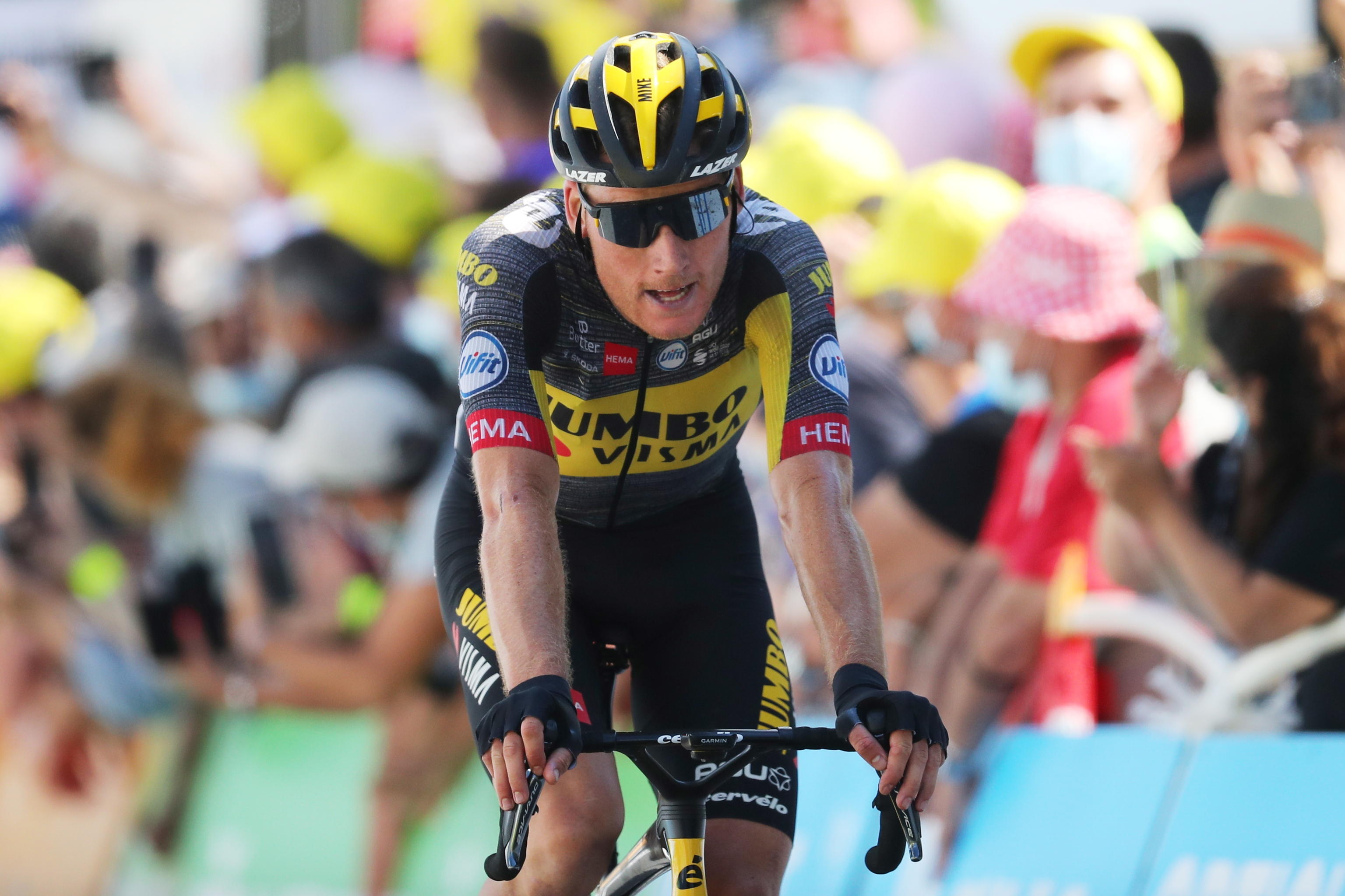 Dopo la frazione odierna è cambiato anche il nome del leader della classifica generale, con l'olandese Robert Gesink - intrappolato in un 'buco' di vento, forse anche a causa di una caduta - è arrivato al traguardo con alcuni secondi di ritardo ed è stato costretto a cedere la maglia rossa al connazionale Mike Teunissen, giunto quarto all'arrivo. Dopo il rimescolamento di oggi, al secondo posto della generale c'è Edoardo Affini, anche lui come il leader della Jumbo-Visma, che ieri ha dominato la cronosquadre inaugurale a Utrecht. Tante le cadute nel percorso di oggi, in una delle quali è stato coinvolto anche l'olandese Wout Poels.