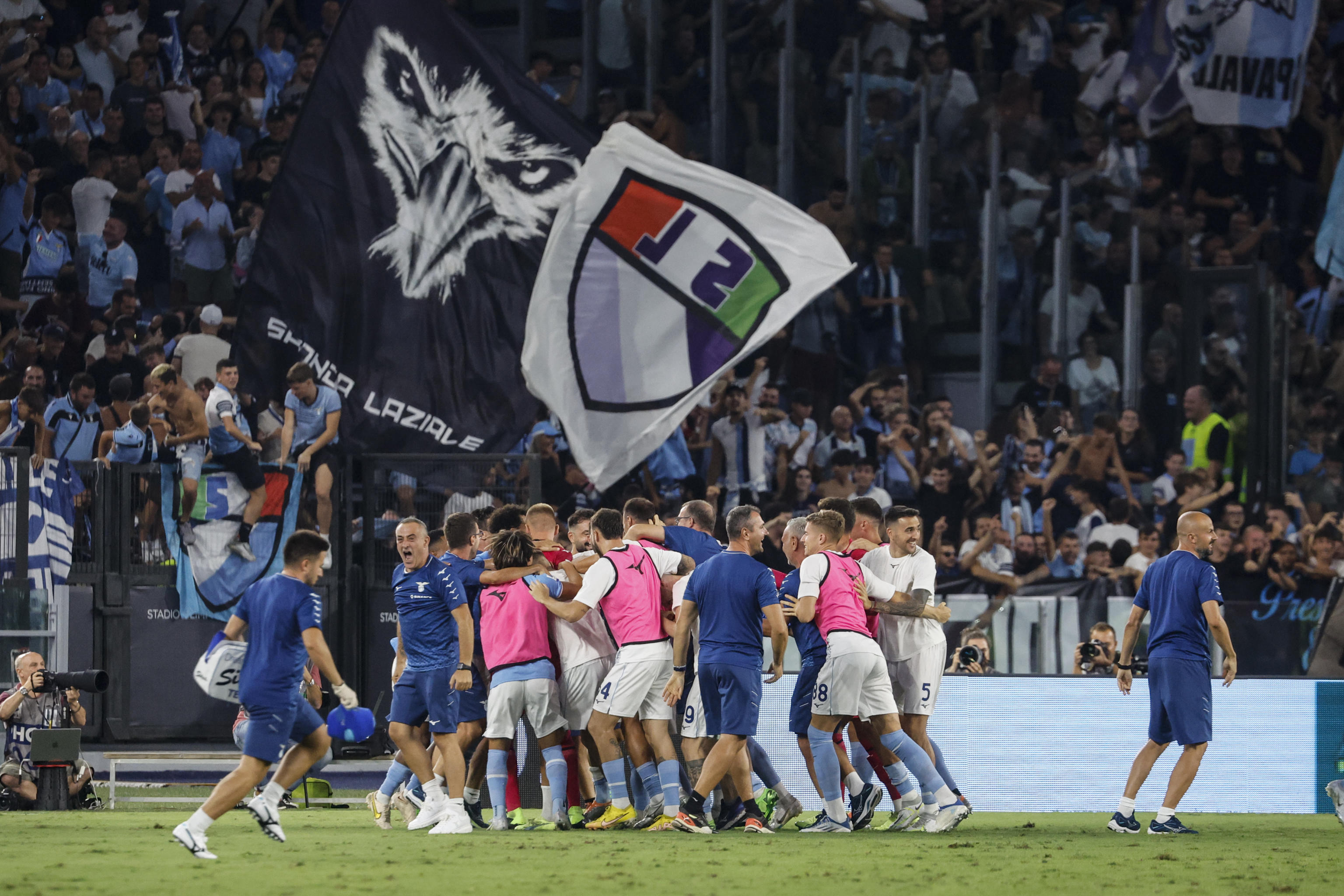 ROMA, 26 AGO - Vittoria di prestigio per la Lazio che all'Olimpico ha battuto 3-1 l'Inter nell'anticipo della terza giornata della serie A. Un tempo ciascuno, con l'Inter più bella nel primo tempo ma sterile davanti alla porta di Provedel. Ed al 40' è la Lazio a sbloccarla, con un colpo di testa di Felipe Anderson su cross di Milinkovic. Nella ripresa la Lazio sfiora il 2-0 con Immobile, fermato in angolo da Handanovic, ma è poi l'Inter a pareggiare con Lautaro. E Dumfries sfiora addirittura il vantaggio, sventato dal portiere biancoceleste. Entrano Luis Alberto e Pedro e l'asse spagnolo cambia la partita. Il primo riporta avanti la Lazio con un gran destro, servito dal connazionale. Poi è Pedro a battere Handanovic per il 3-1 finale che porta momentaneamente la Lazio in vetta alla classifica.