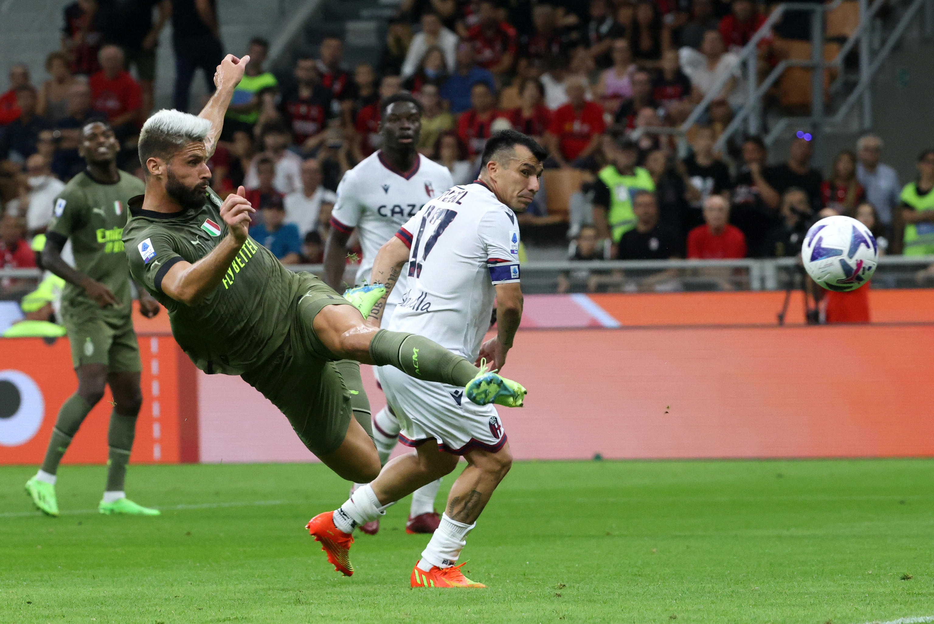 MILANO, 27 AGO - Il Milan torna a vincere, lo fa a San Siro battendo il Bologna 2-0 con i gol di due giocatori fondamentali per la squadra rossonera: si sbloccano Leao e Giroud, debutta da titolare con una grande prova De Keteleare, Maignan ritrova la porta imbattuta. Solo risposte positive quindi per Stefano Pioli all'inizio di un tour de force che vedrà il Milan - questa sera in campo con la terza maglia che non sembra convincere i tifosi sui social - affrontare sette partite in ventuno giorni.
