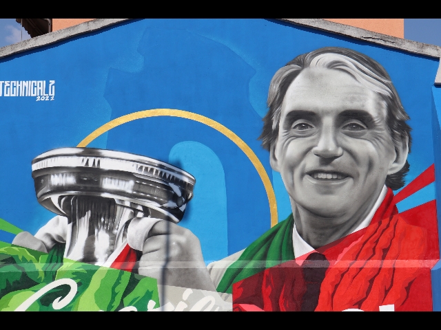(ANSA) - JESI (ANCONA), 08 SET - Un grande murales dedicato a Roberto Mancini, che alza la coppa degli Europei è stato realizzato a Jesi, la città natale del commissario tecnico della Nazionale. Ad accompagnare il dipinto la scritta "Grazie Roberto". Invece, a fare da sfondo all'opera è la facciata di un'abitazione privata che si trova esattamente di fronte alla chiesa di San Sebastiano e al campo di calcio dell'oratorio dove Mancini, da bambino, ha mosso i primi passi da calciatore. "Questo lavoro, pensato in collaborazione con l'amministrazione comunale, vuole essere un riconoscimento a Mancini, sia come tecnico per il successo storico ottenuto agli Europei, sia come uomo", racconta all'ANSA Federico Zenobi, l'artista jesino che ha realizzato il dipinto assieme a Nicola Canarecci. "Siamo nel quartiere dove Roberto è nato, la sua casa di allora si trova proprio a pochi passi da qui", aggiunge Zenobi. Che spiega: "Abbiamo scelto di rappresentare questa immagine di Mancini perché sul suoi volto si legge tutta la fatica e la felicità di quel momento. Il dipinto - dice ancora - è stato interamente realizzato con bombolette di vernice spray e abbiamo impiegato 4 giorni". L'opera in queste ore sta richiamando l'attenzione della gente che arriva davanti al dipinto per scattare foto e farsi dei selfie. Intanto Jesi si prepara ad accogliere il ct azzurro per la festa in suo onore in programma il prossimo 15 settembre. (ANSA).