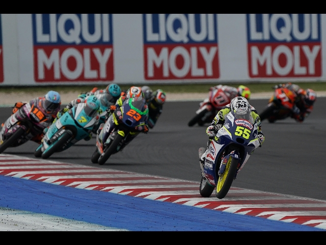 Romano Fenati (Husqvarna), partito dalla pole, è caduto a nove giri dal termine quando guidava la gara con quasi 3" di vantaggio su Foggia. (ANSA).