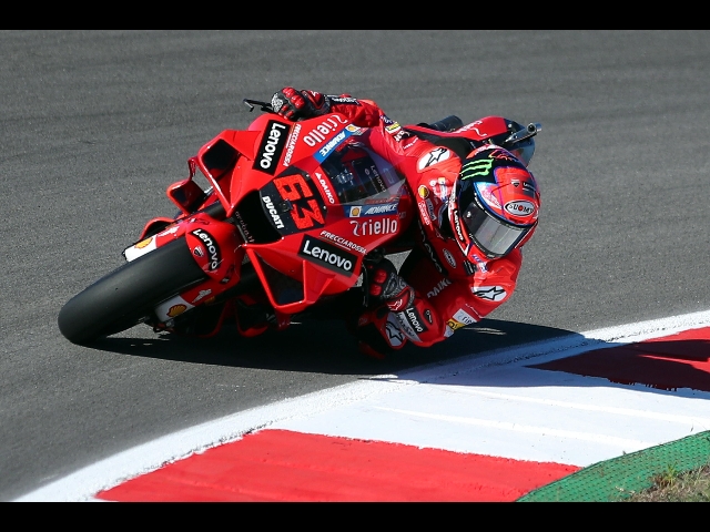 (ANSA) - ROMA, 06 NOV - Doppietta Ducati nelle qualifiche della MotoGp del Gran Premio del Portogallo. Francesco Bagnaia ha fatto segnare il miglior tempo (1'38''725) conquistando così la pole anche a Portimao. Dietro al piemontese ci sono Jack Miller (+0.104) e Joan Mir su Suzuki (+0.168). Subito dopo le Ducati-Pramac di Jorge Martin e Johann Zarco. Quartararo è settimo, Valentino Rossi è 16/0. (ANSA).