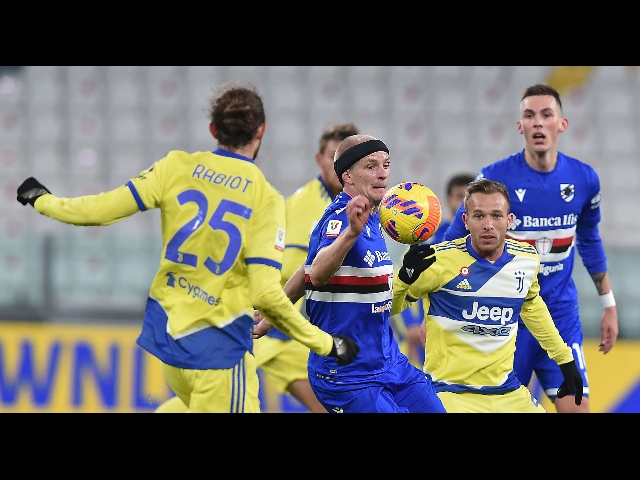 (ANSA) - TORINO, 18 GEN - La Juventus si è qualificata ai quarti di finale della Coppa Italia travolgendo allo Stadium la Sampdoria con il punteggio di 4-1 (1-0). Decidono per i bianconeri i gol di Cuadrado (25'), Rugani (52'), Dybala (67') e Morata su rigore (77'). Per i blucerchiati a segno Conti (63'). (ANSA).