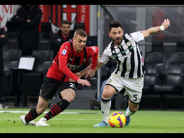 Leao porta avanti il Milan poco prima della mezz'ora, ispirato da Tonali. Nella ripresa l'Udinese cresce e trova il pari con Udogie, gol contestato dai rossoneri per un tocco con il braccio. (ANSA).