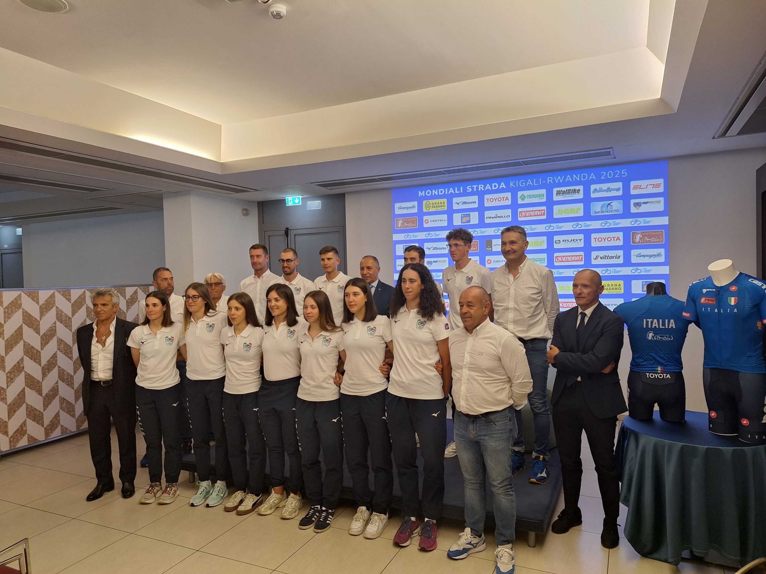 "Siamo una squadra completa e abbiamo le nostre carte da giocarci", dice il ct Marco Villa alla presentazione degli azzurri che prenderanno parte alla competizione. Il primo contingente di undici atleti parte questa sera dall'aeroporto di Malpensa, guidato proprio dal ct Marco Villa, mentre un secondo gruppo di otto atleti arriverà in Ruanda il 19 settembre. Tra il 23 e il 24 settembre, infine, raggiungeranno la sede gli ultimi otto stradisti, tra cui Elisa Longo Borghini, Giulio Pellizzari e Giulio Ciccone.