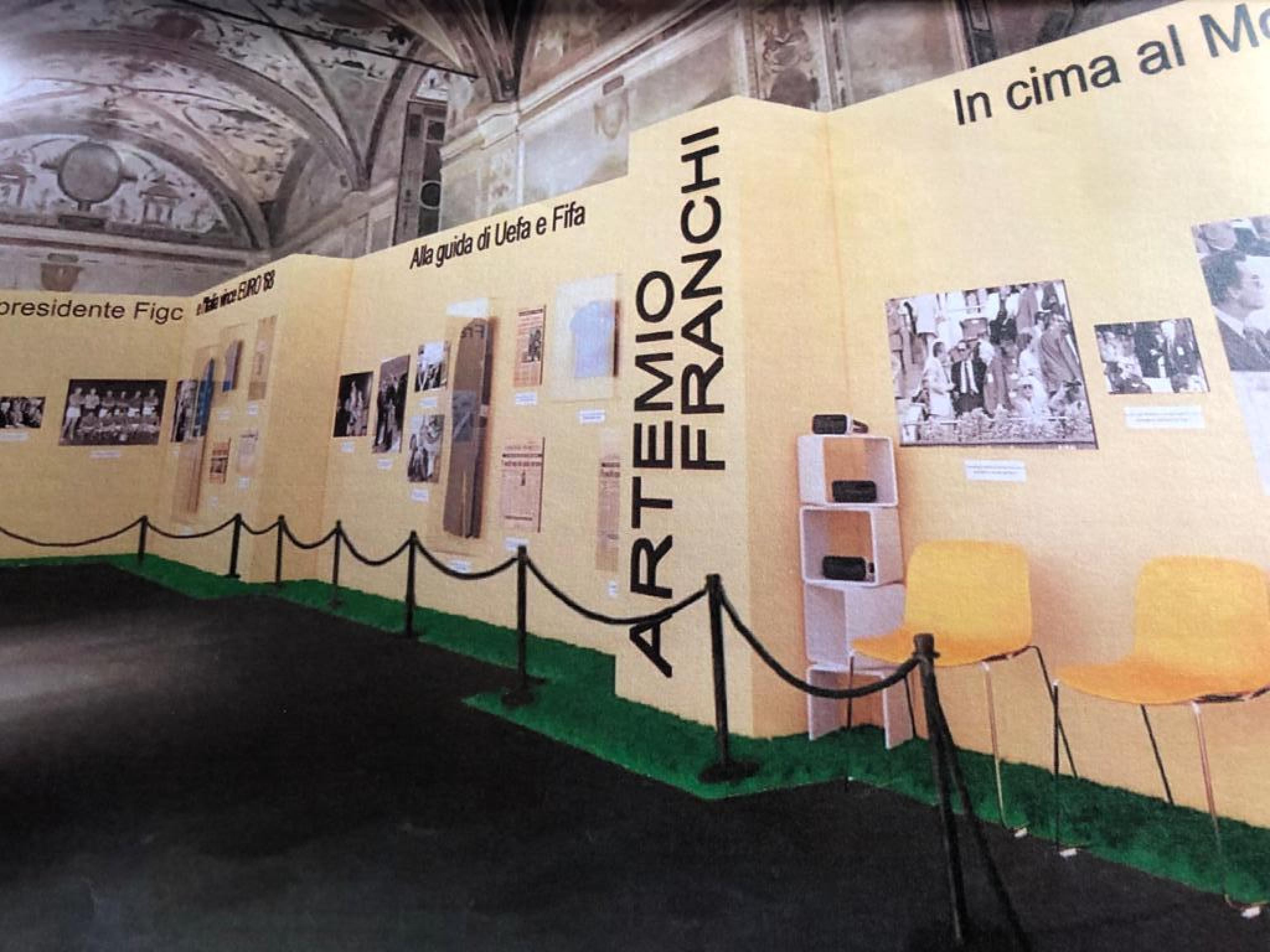 'Franchi ieri, oggi e domani' è divisa in cinque aree fotografiche: nella prima parte viene raccontata l'infanzia e la giovinezza e nelle teche sono esposti i diari di guerra in cui sono descritti i drammatici momenti della sua prigionia in un campo di concentramento e i bombardamenti di Firenze, e quindi telegrammi dal fronte, disegni, giornali e foto con i commilitoni fino alle poesie che Artemio Franchi dedicò alle città del cuore, Firenze e Siena, e all'originale proposta di matrimonio fatta all'amata Aldina. Gli aspetti della carriera sono esposti nelle sezioni successive che comprendono fra gli altri il contatto di assunzione di Franchi con la Fiorentina, il comunicato ufficiale che sancisce la nascita della Serie C, gli inediti documenti scritti da presidente Figc sui bilanci di tutte le squadre di serie A, le medaglie e le foto della nascita di Coverciano. Fra le curiosità una lettera privata dell'allora Presidente della Repubblica Sandro Pertini a Franchi e la valigiache lo accompagnava durante le trasferte. Nello spazio più intimo, ecco l'immagine del dirigente toscano con il foulard della Torre, la 'sua' contrada a Siena, a quella che lo ritrae con Papa Wojtyla, le pubblicazioni di laurea. (ANSA).