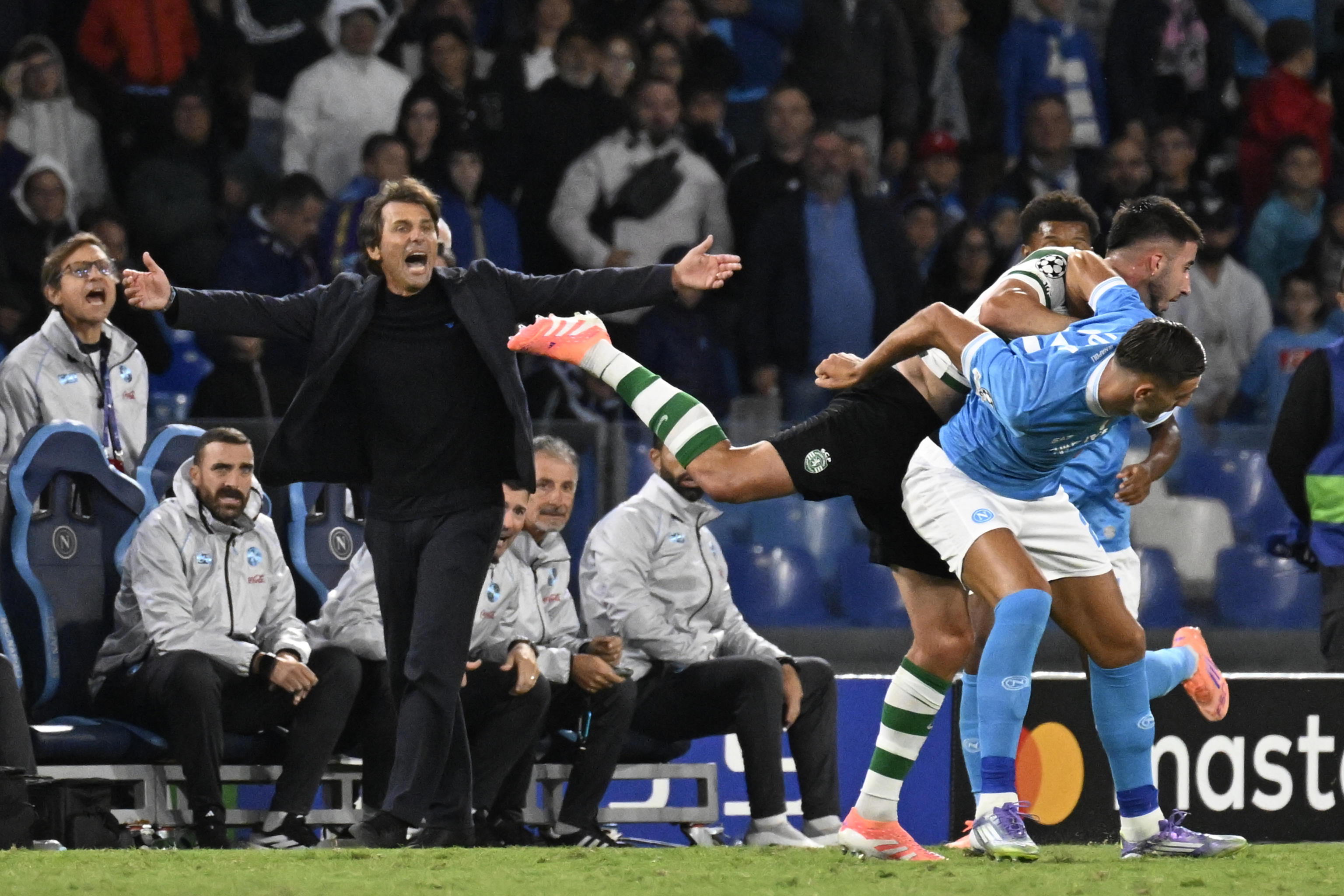 NAPOLI, 01 OTT - "Stasera siamo stati molto bravi a vincere nonostante l'emergenza della squadra, che ci ha portato a una fase difensiva del tutto diversa rispetto allo scorso anno ma abbiamo avuto risposte". Lo ha detto il tecnico del Napoli Conte a Sky dopo il successo sullo Sporting Lisbona. "In questi due giorni - ha spiegato Conte - ho parlato con i ragazzi che a Milano non hanno giocato male, ma i due gol concessi sono situazioni in cui potevamo far meglio e ne abbiamo parlato. La squadra in generale nel comandare la partita la vedo più matura, rispetto allo scorso ma non dobbiamo soffrire la paura di prendere gol, perché così ti chiudi, fatichi e rischi". Conte ha spiegato anche i cambi della formazione rispetto al 4-3-3 dello scorso anno con quattro centrocampisti e un esterno in meno a sinistra: "Noi abbiamo due opzioni - spiega Conte - di giocare con quattro centrocampisti e cercare di continuare su questa strada e lo facciamo perché ci sono margini di miglioramenti. Ma abbiamo anche la strada del 4-3-3 con più qualitativo inserendo anche De Bruyne, ma ci deve essere sempre la voglia di andare avanti. L'importante è mantenere dei principi, quando la palla ci sorpassa dobbiamo avere la forza per andare indietro, e poi nella costruzione del gioco dopo 60-70 minuti chi entra in campo dà una nuova energia. I ragazzi in campo continuano a fare quello fatto lo scorso anno che ci ha portato a vincere lo scudetto, sapendo che con 4 centrocampisti dominiamo di più il gioco, ma forse è più complicato perché hai un esterno in meno a sinistra. Ma oggi possiamo dire che con un anno alle spalle possiamo fare entrambe le cose".