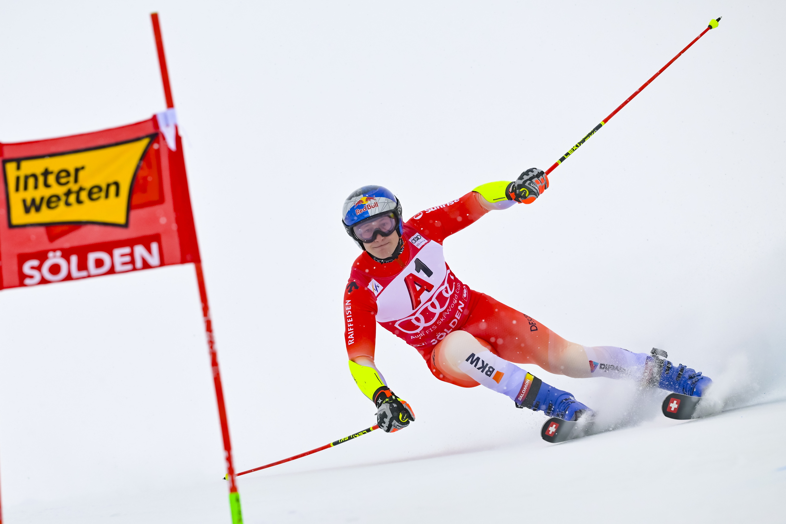 SOELDEN, 26 OTT - Lo svizzero Marco Odermatt, dominatore delle ultime stagioni dello sci, è al comando in 58.18 dopo la prima manche dello slalom gigante di Soelden, gara di apertura della nuova annata agonistica. Immediatamente dietro di lui gli austriaci Marco Schwarz in 58.19 e Stefan Brennsteiner in 58.54.