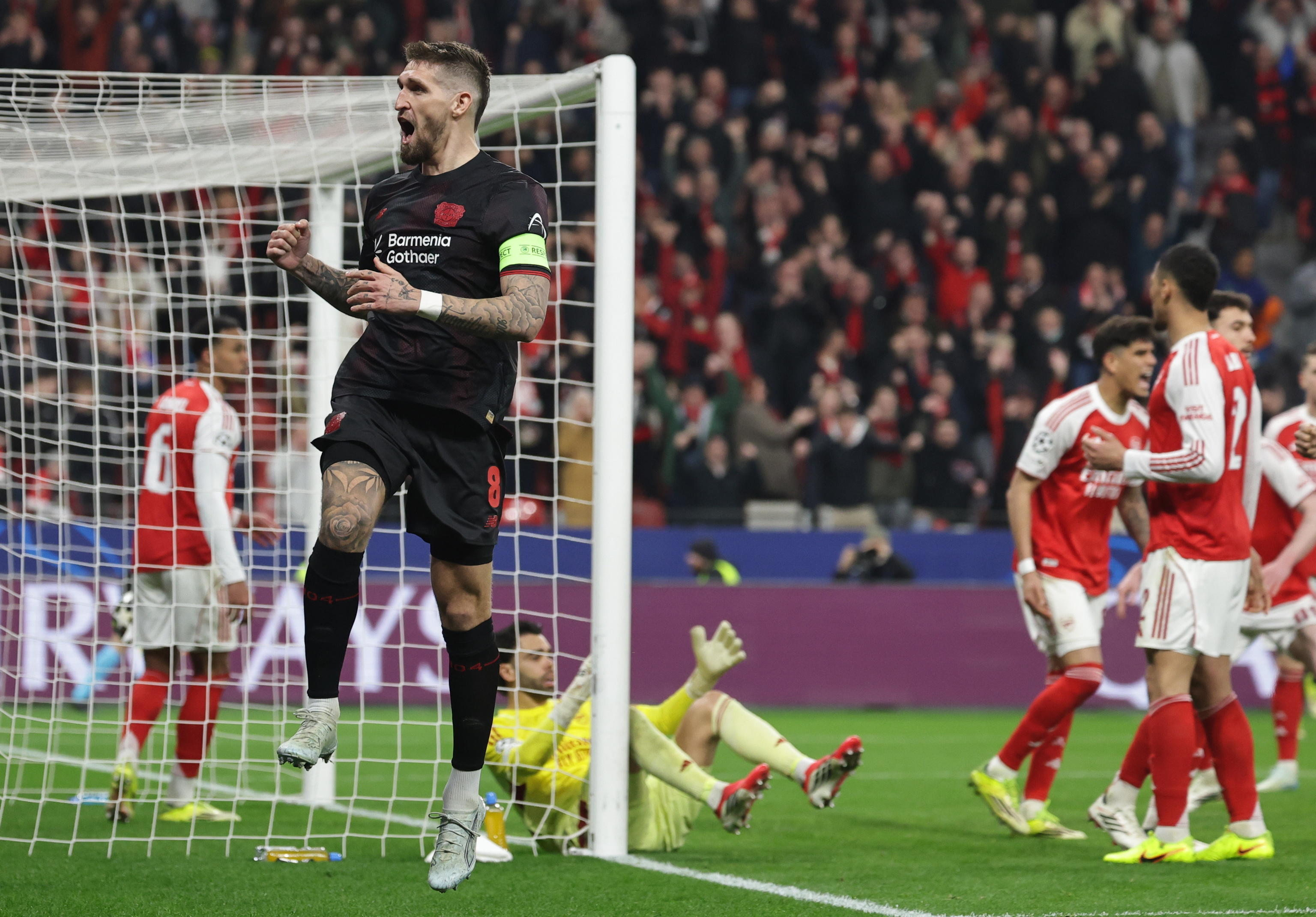 ROMA, 11 MAR - Bayer Leverkusen e Arsenal pareggiano 1-1 nell'andata degli ottavi di Champions League. I padroni di casa vanno in vantaggio con Robert Andrich al 1' st sugli sviluppi di un calcio d'angolo, ma i londinesi recuperano con un rigore segnato da Kai Havertz al 44' st.