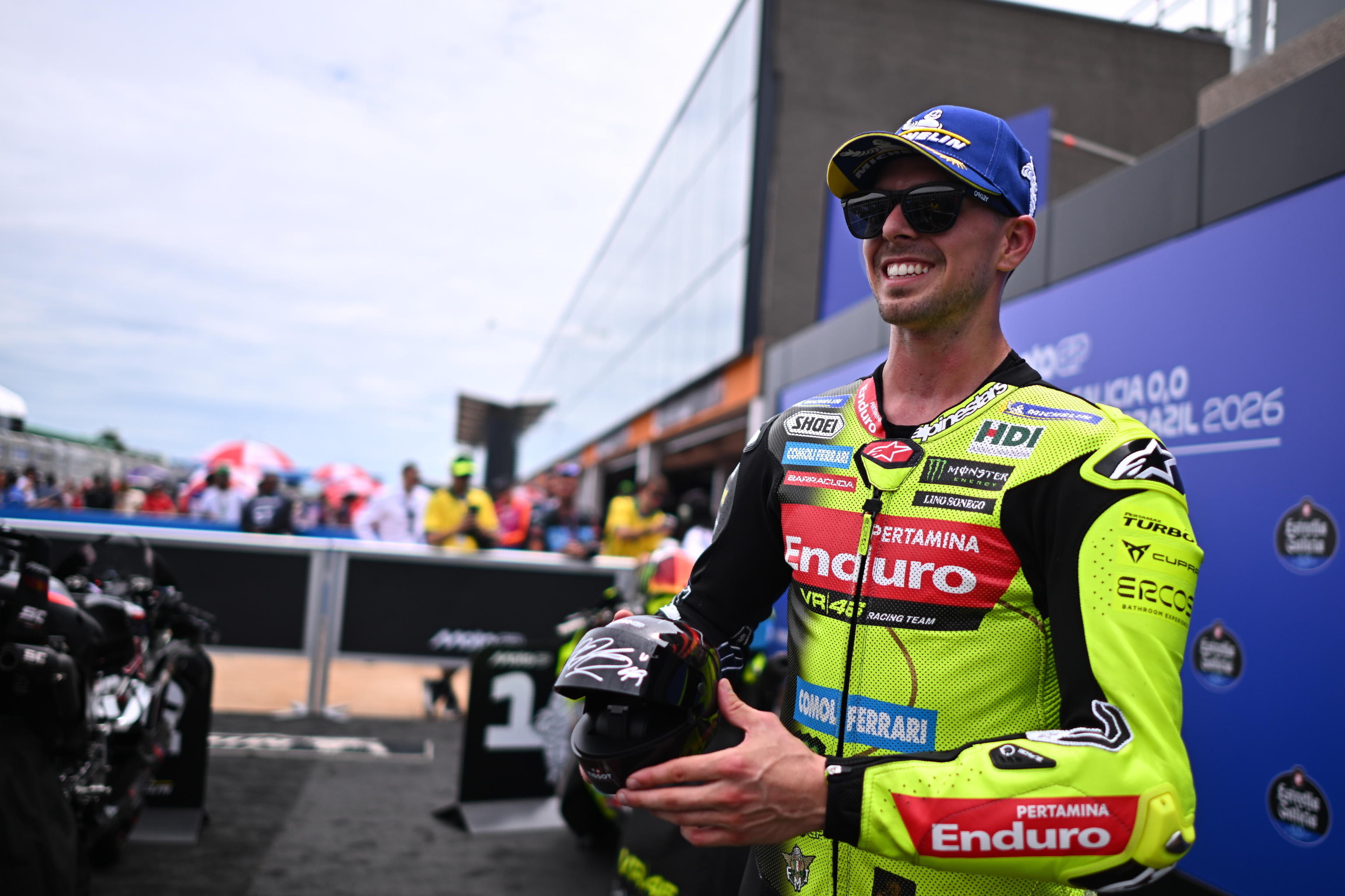 ROMA, 28 MAR - Fabio Di Giannantonio (Ducati VR46) ha ottenuto la pole del gran premio delle Americhe della classe MotoGP, con il nuovo record della pista ad Austin: 2'00"136. In prima fila partiranno anche Marco Bezzecchi (Aprilia) e Pedro Acosta (Ktm). Apre la seconda fila la Ducati ufficiale di Francesco Bagnaia, sesto tempo per Marc Marquez con l'altra Ducati ufficiale.