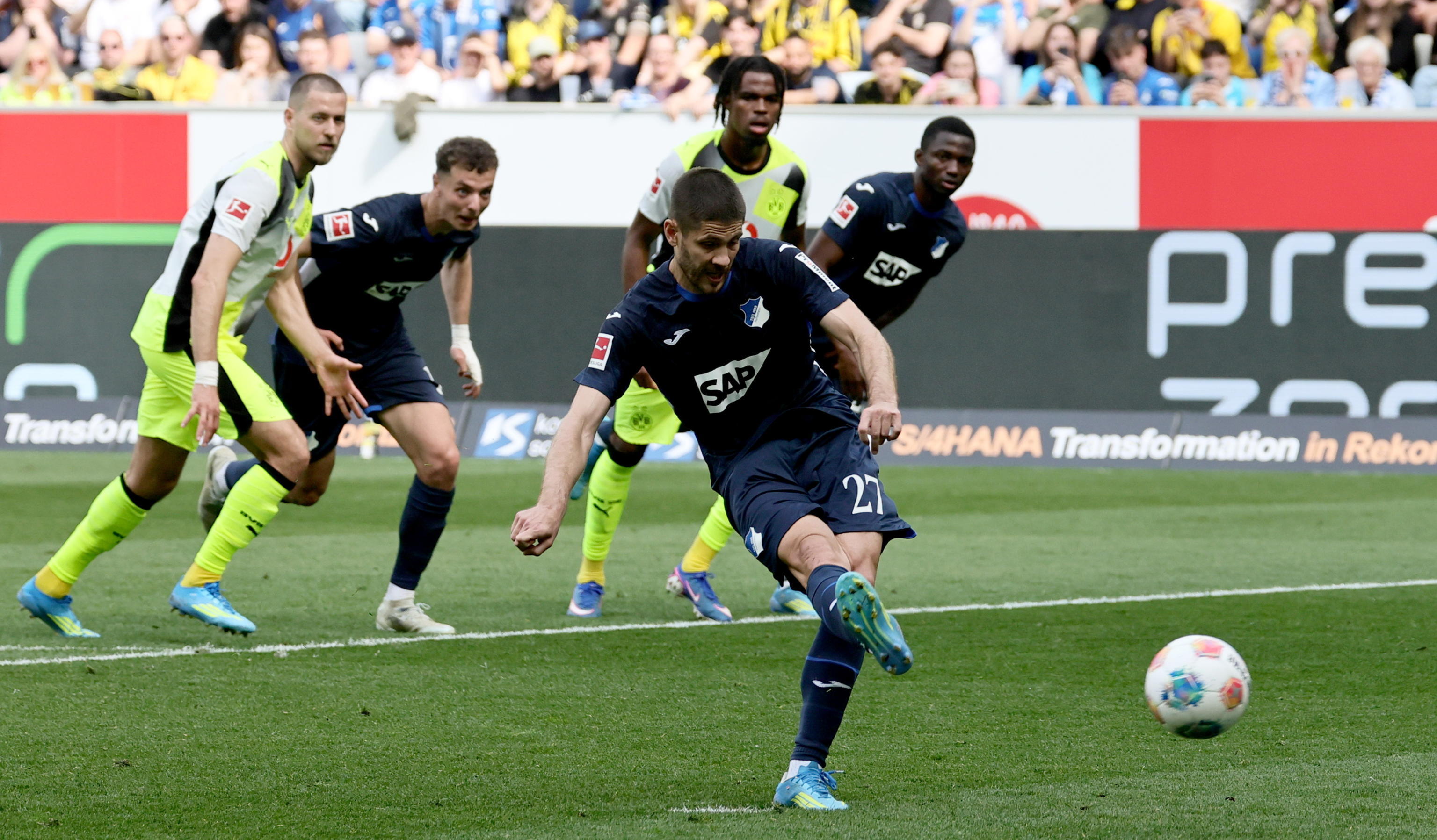 Oggi il Borussia Dortmund é stato battuto ancora, una settimana dopo il ko casalingo contro il Bayer Leverkusen (1-0) al Westfalenstadion. I gialloneri hanno subito due rigori, entrambi trasformati da Andrej Kramaric (42' e 90'+8), mentre Serou Guirassy aveva pareggiato momentaneamente per il Borussia (87').