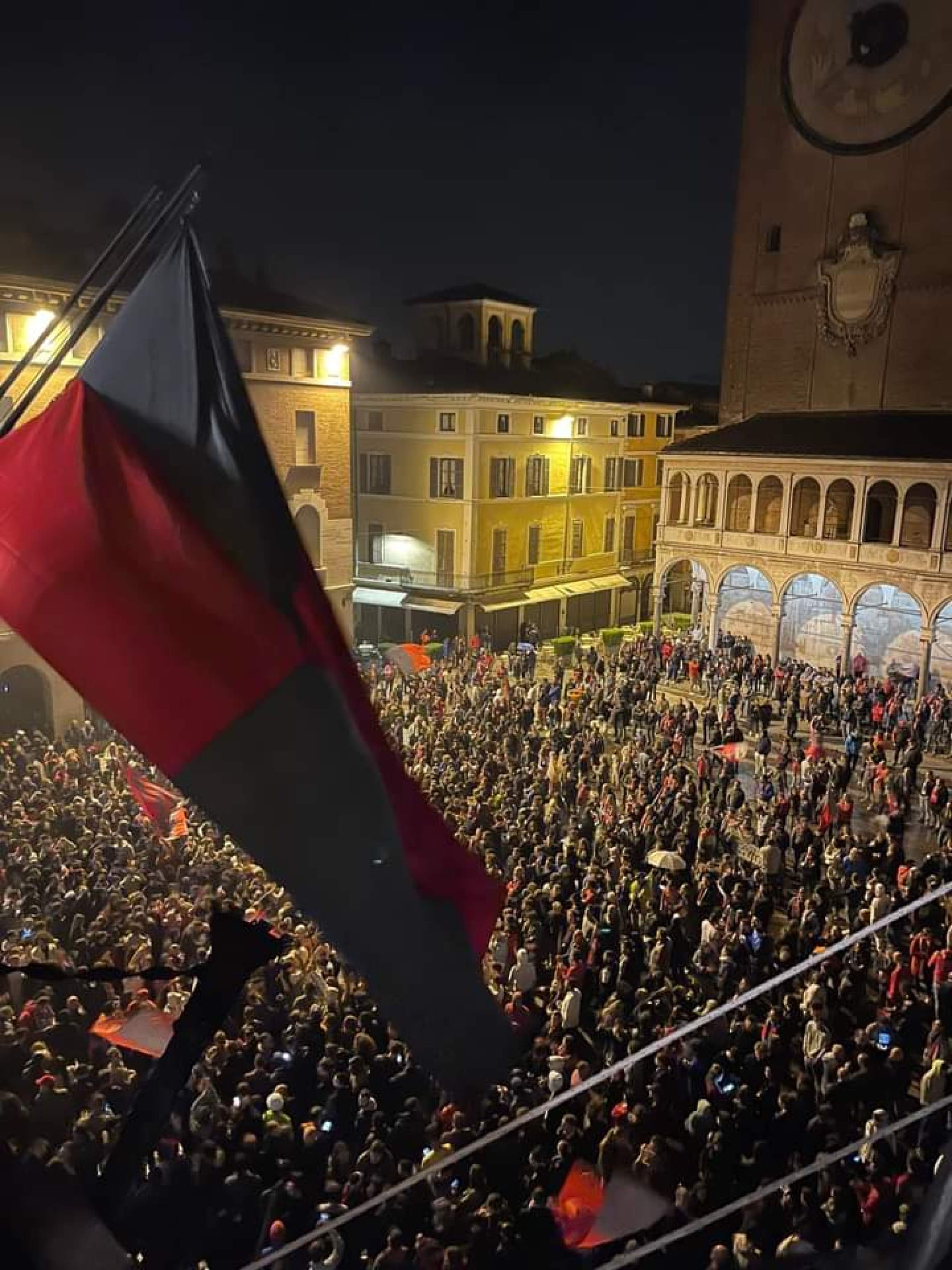 CREMONA, 07 MAG - La vittoria a Como, il ritorno in pullman, la città impazzita di gioia attraversata lentamente per godersi lo spettacolo dei caroselli e poi, intorno alle due e mezza di notte, l'approdo in piazza del Comune vestita di grigiorosso: non ha dormito, Cremona, per accogliere i suoi eroi, tornati in Serie A 26 anni dopo l'ultima volta. Pioggia, bandiere, fuochi d'artificio e fumogeni, ai piedi del Duomo. E la squadra portata in trionfo. "E' un sogno che si avvera, l'impresa della compattezza e dell'unità tra squadra, società e tifosi", ha detto mister Fabio Pecchia, condottiero come Gigi Simoni nel 1996. "E' stato un campionato durissimo - ha aggiunto Daniel Ciofani - e gli ultimi 90 minuti rappresentano lo specchio della stagione. Ma eravamo convinti fin dall'inizio di potercela fare". Pecchia, Ciofani, il portiere Carnesecchi, i giovani in vetrina come Fagioli e Okoli, il bomber ritrovato al momento decisivo Di Carmine e tutti gli altri sono saliti a palazzo comunale, accolti dal sindaco Gianluca Galimberti, dal suo vice Andrea Virgilio, dall'assessore allo Sport Luca Zanacchi e da buona parte dell'amministrazione. "Ci avete regalato una gioia incredibile, una conquista pazzesca - ha esultato il primo cittadino, anche lui appena tornato dallo stadio di Como -. A nome di tutta la città ringrazio voi, il mister, i tifosi, la società. E soprattutto il presidente Giovanni Arvedi. Ora tutta la città, grazie a voi, ha davanti un'occasione storica e bellissima".
