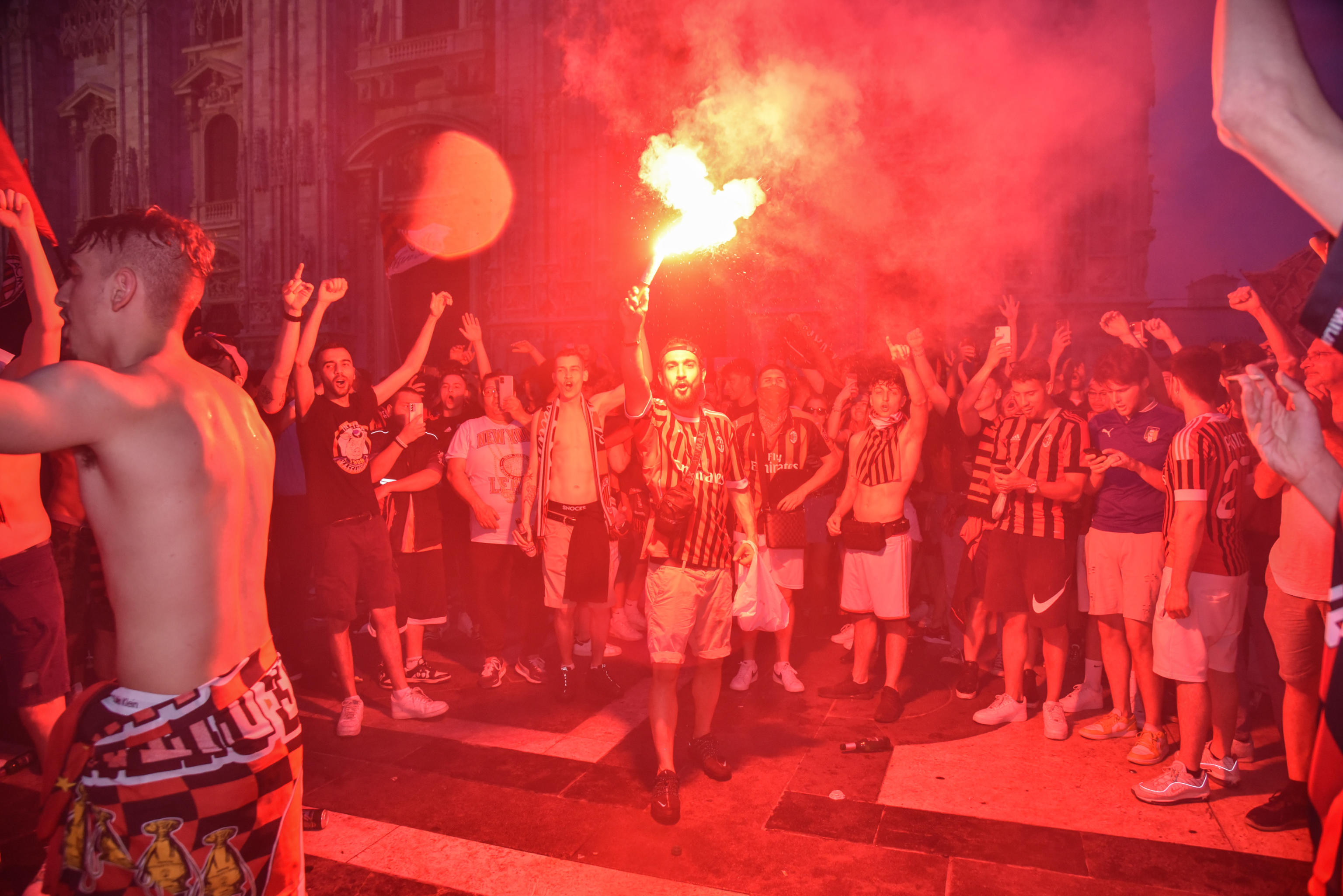 In piazza, intorno alle 22, secondo quanto spiegato, sono presenti circa 30.000 persone, mentre si sono radunate circa 6 mila persone nei pressi di Casa Milan.