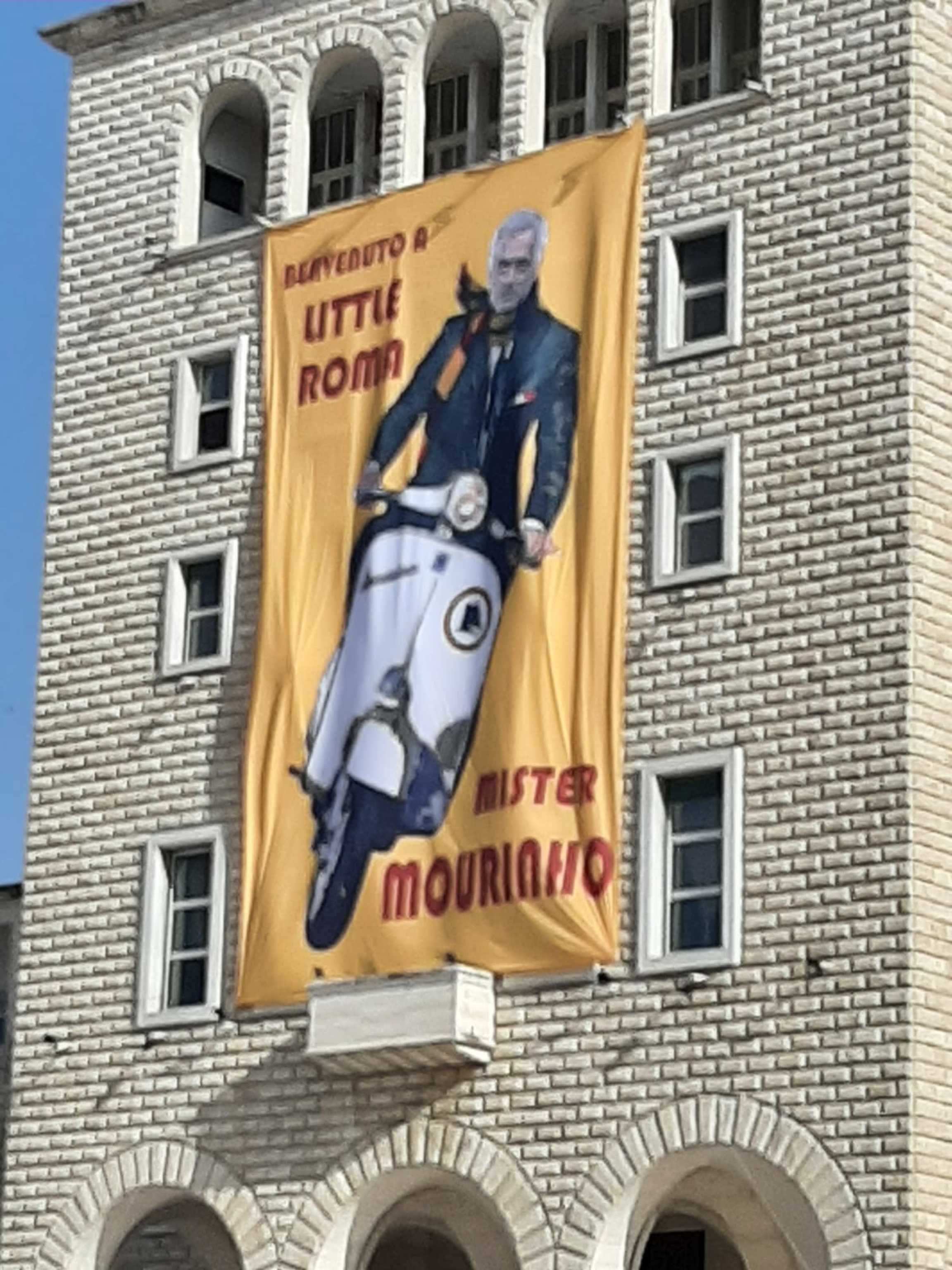Così per dare il benvenuto all'allenatore della Roma è stato appeso un mega-striscione sulla facciata dell'Università di Tirana che si trova nei pressi dello stadio Kombetare che domani ospiterà la finale. L'immagine di 'Mou' è quella ormai celebre di lui in Vespa ideata dallo street artist Harry Greb, e sullo 'stendardo' c'è una scritta, rossa su sfondo giallo, che fa capire quanto Tirana domani farà il tifo per la Roma: "Benvenuto a Little Roma, Mister Mourinho".