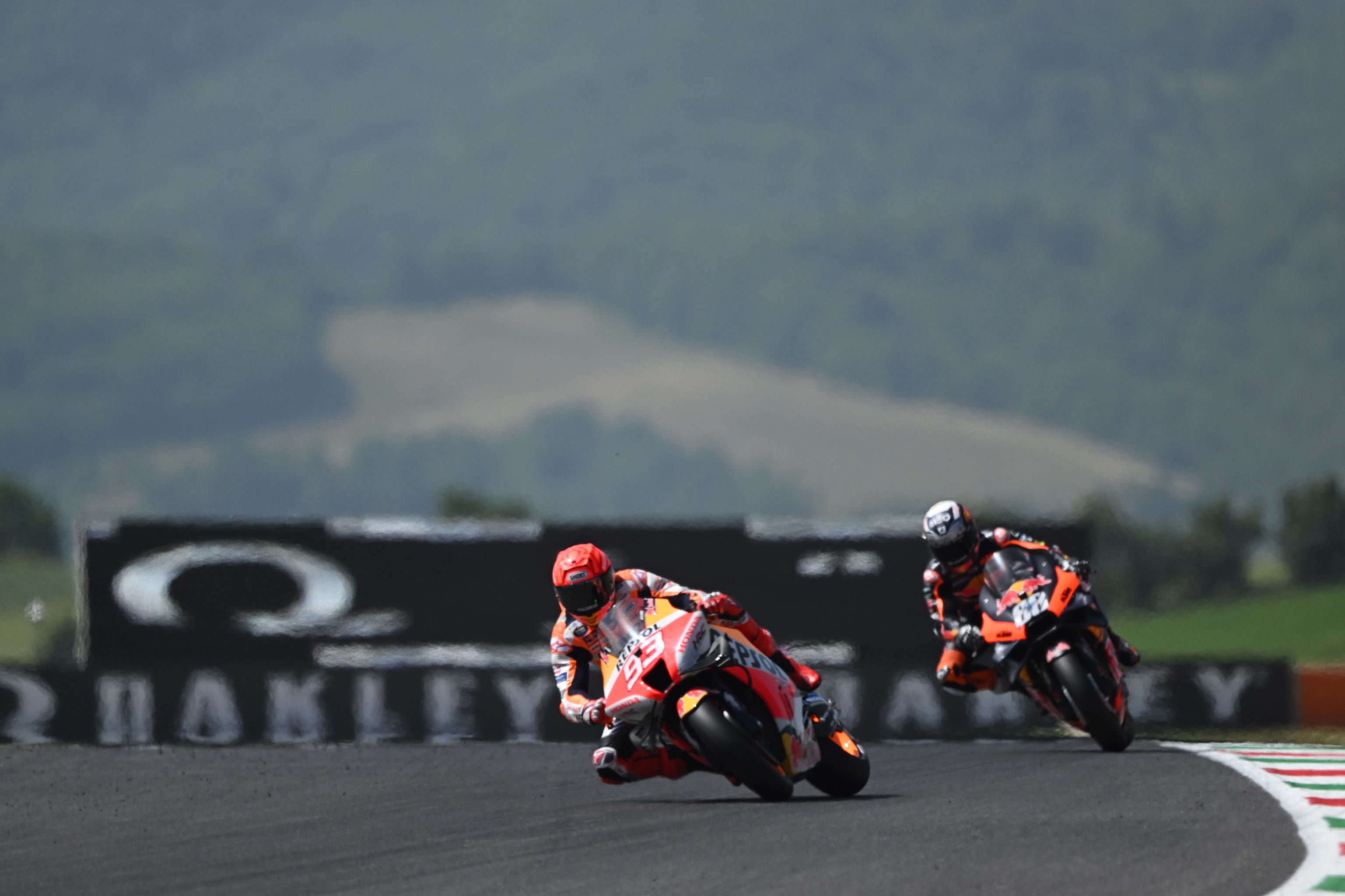SCARPERIA, 28 MAG - Spettacolare caduta per Marc Marquez all'inizio delle qualifiche finali (la Q2) del Gran Premio d'Italia al Mugello classe MotoGp. Lo spagnolo è uscito di pista alla curva 2 con la sua Honda impazzita che dopo una carambola ha preso fuoco andando in pezzi. Fortunatamente Marquez ne è uscito illeso, mentre le qualifiche sono state sospese per permettere la pulizia della pista. Intanto sul tracciato del Mugello è in agguato un minaccioso temporale.